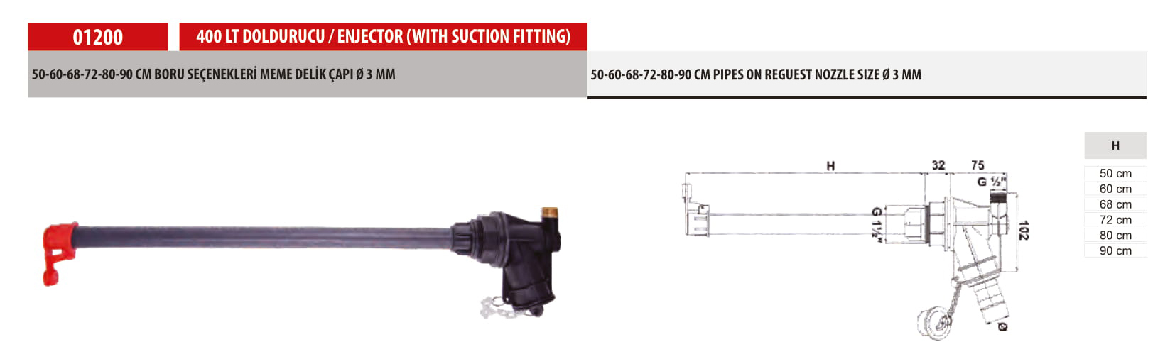 50-60-68-72-80-90 CM PIPES ON REGUEST NOZZLE SIZE Ø 3 MM