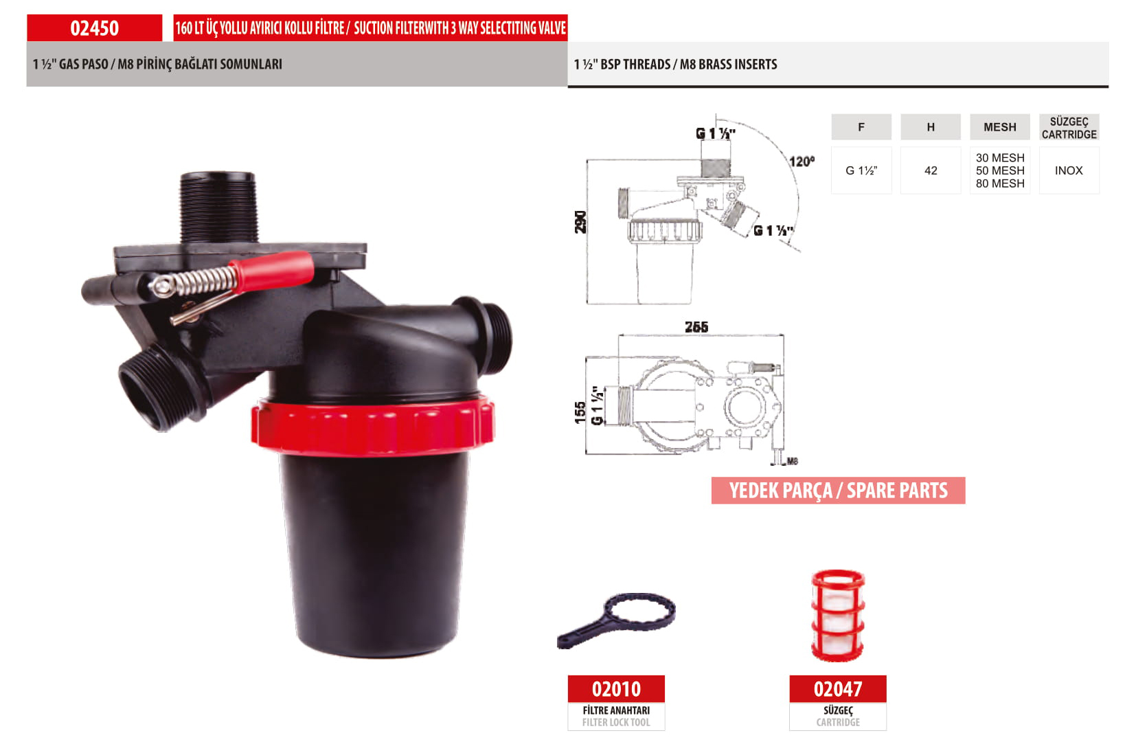 02450 160 LT SUCTION FILTERWITH 3 WAY SELECTITING VALVE