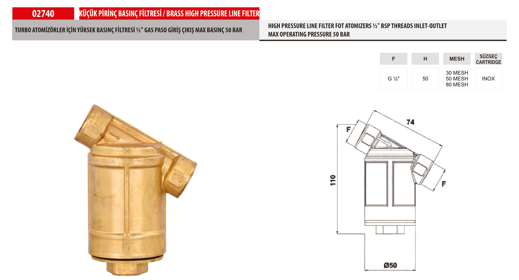HIGH PRESSURE LINE FILTER FOT ATOMIZERS ½" BSP THREADS INLET-OUTLET