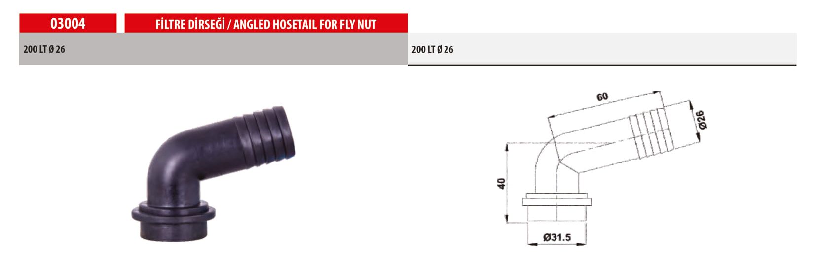 03004 ANGLED HOSETAIL FOR FLY NUT
