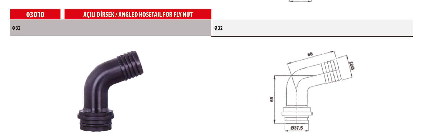 03010 ANGLED HOSETAIL FOR FLY NUT