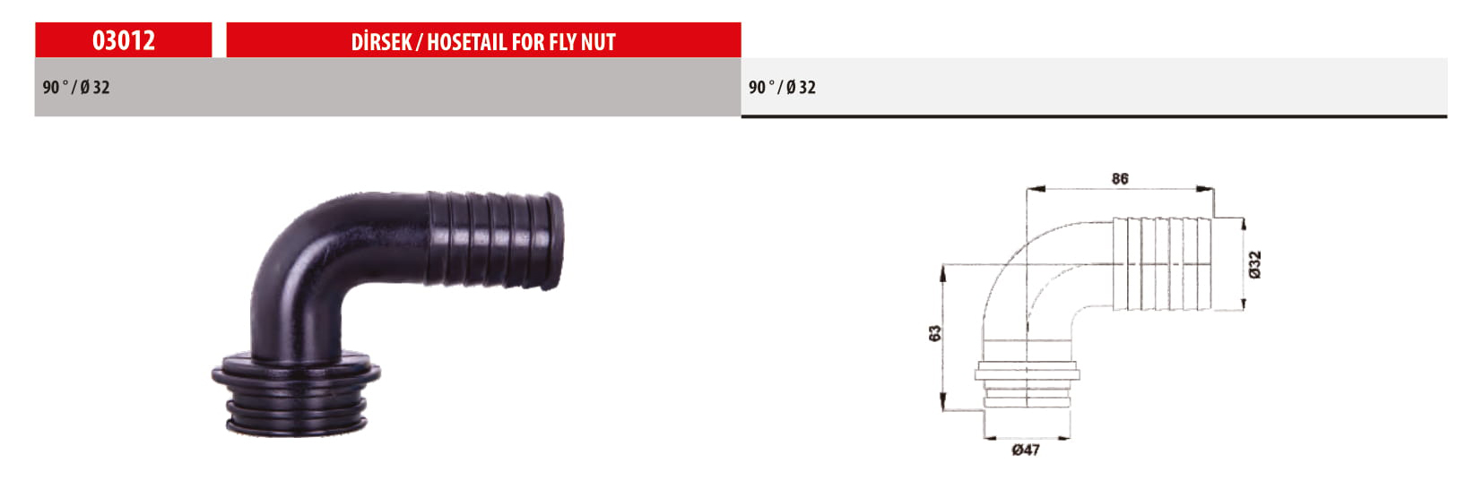 03012 HOSETAIL FOR FLY NUT