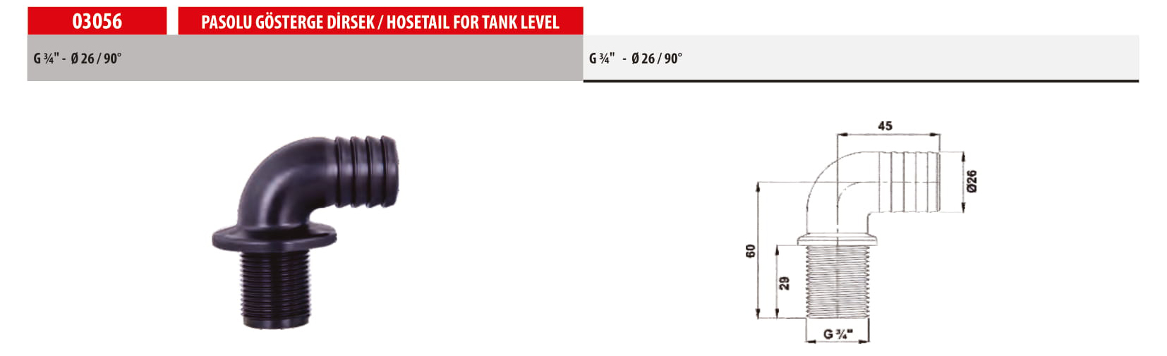 03056 HOSETAIL FOR TANK LEVEL