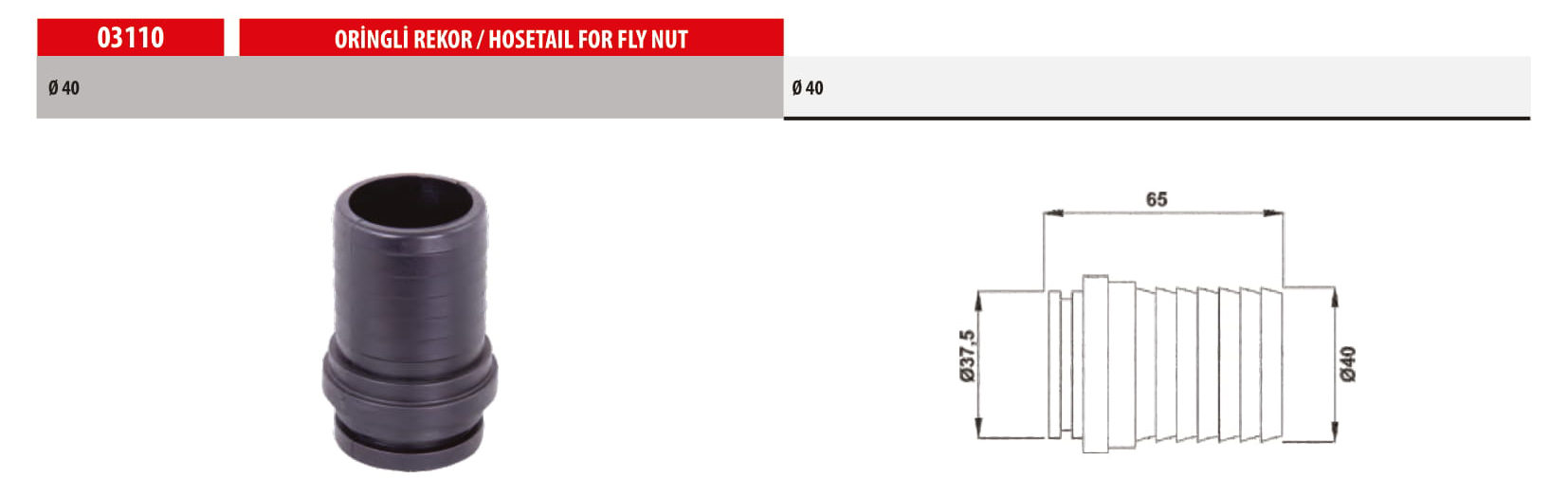 03110 HOSETAIL FOR FLY NUT