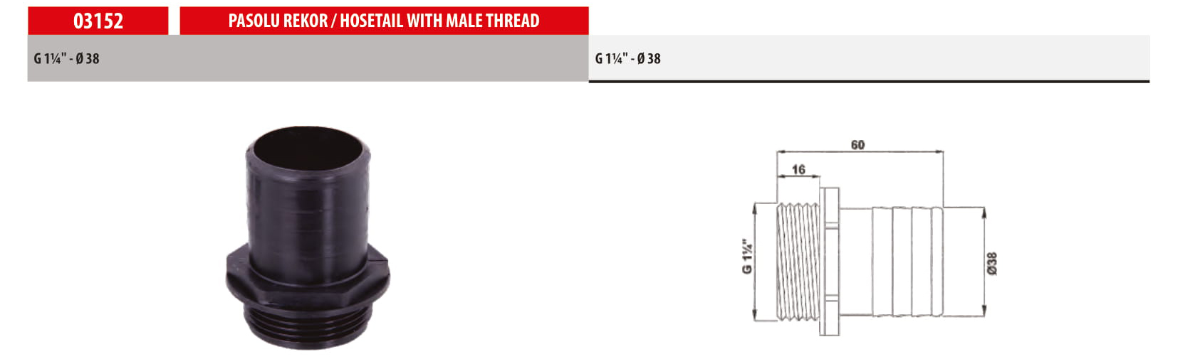 03152 HOSETAIL WITH MALE THREAD