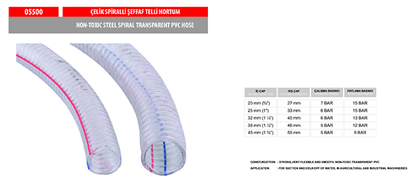05500 NON-TOXIC STEEL SPIRAL TRANSPARENT PVC HOSE